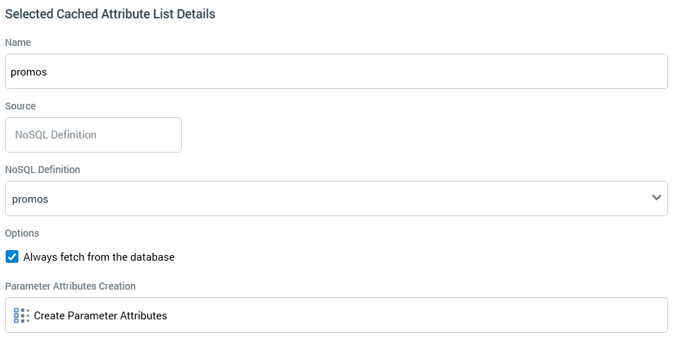If a NoSQL-based cached attribute list, the following fields are displayed: