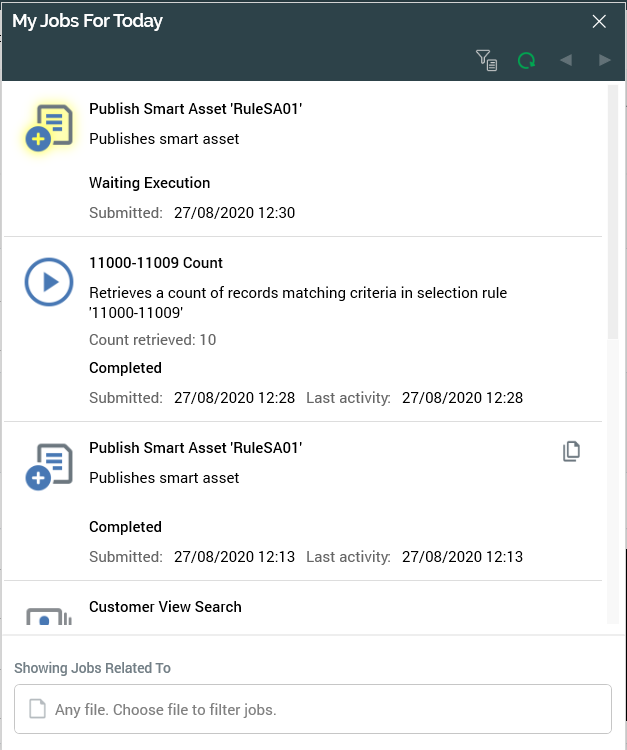 My Jobs dialog content