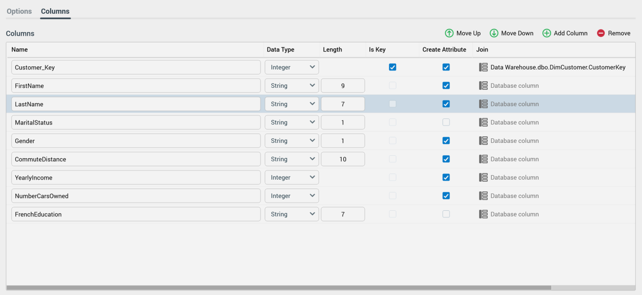 Data type: this dropdown field allows you to specify the column's data type as one of DateTime, Decimal, Integer and String (the default).