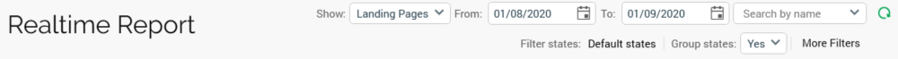 Filter States: you can limit the items displayed within the Realtime Report to only those with state results that match one or more selected states.By default, only "Default states" are shown. These are defined as Page Visit, Link Select, Form Submission (for web pages), and Targeted (for interactions). If only default states are currently selected, this setting reads "Default States". This is the initial setting upon invocation of the Realtime Report.