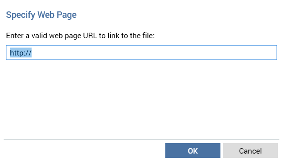 Change Linked Web Page: clicking this button also displays the Specify Web Page overlay, allowing you to specify the URL of a different web page to which to link the file.
