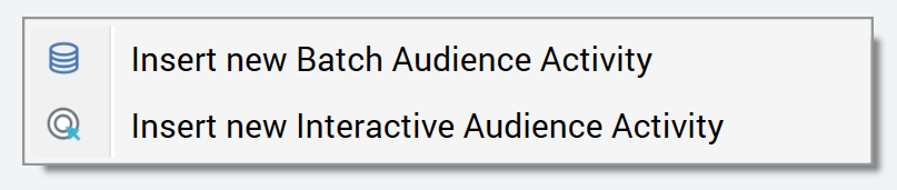 Your choice made, an activity of the appropriate type is added to the workspace and configured automatically with the selected audience. The name of the new audience activity is the same as the audience you dragged (if an identically-named activity exists already, an integer is appended to the name to ensure uniqueness (and can be incremented if required)).