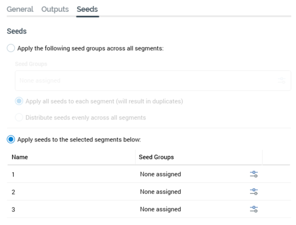 Apply seeds to the selected segments below: this option is selected by default. It allows you to assign seed groups to specific audience segments manually.