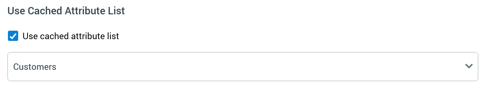 Cached attribute list: this dropdown lists all existing attribute-based CALs alphabetically. On receipt of a queue message when a CAL has been selected, if a queue message contains the CAL's lookup key, all attributes configured in the CAL are made available for use in outbound personalization.