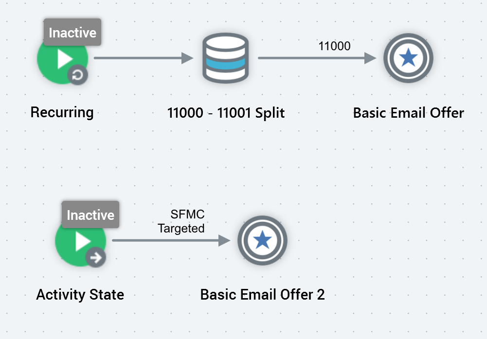 …in this case, all records output by ‘Basic Email Offer’ (i.e. those in a ‘Targeted’ state) will serve as the input to ‘Basic Email Offer 2’.