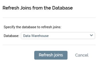 You can select the database using the dropdown, and then select Refresh Joins to proceed with the refresh (after confirming your intention at the “Are You Sure?” dialog).