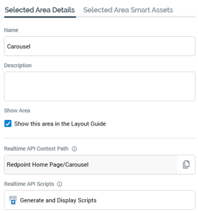 Show Area: this Yes/No dropdown field allows you to specify that the smart asset be shown as a separate area in the Layout Guide. If set to "Yes", a separate area, named after the smart asset and with a smart asset icon, is displayed.