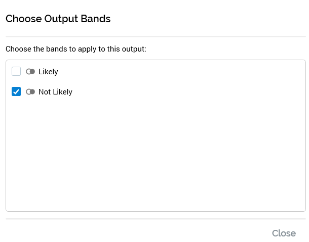Bands: this property allows you to define that records that fall within the selected model project bands are to be included in the output. If the selected model project contains no bands, the text “N/A” is shown. Otherwise, “[n] band(s)” is displayed (where [n] is number of bands selected for the output). You can select the same to select bands to assign to the output using the Choose Output Bands dialog.