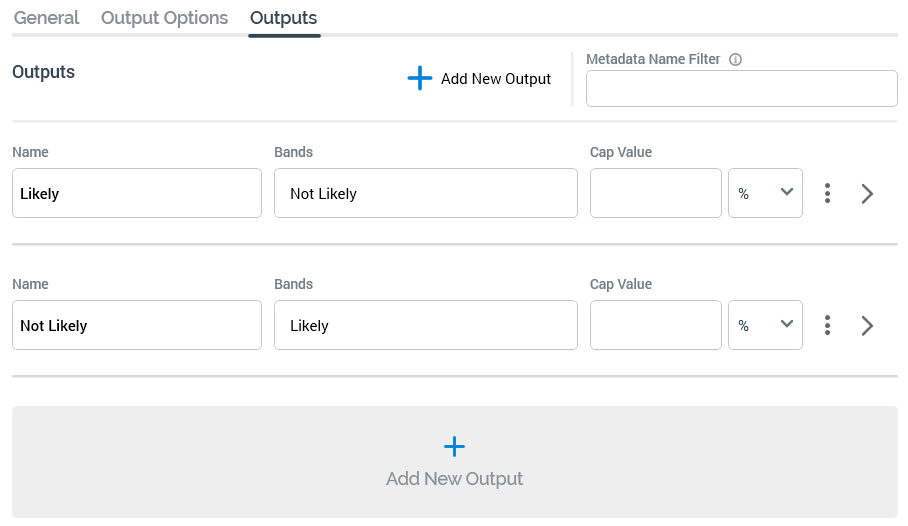 The Outputs tab allows you define how the block’s data will be segmented. It is similar to the Split block equivalence, as documented in the Split block documentation.
