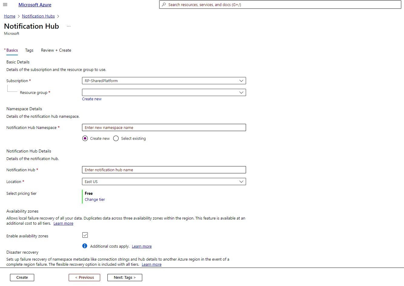 This section describes how to create and configure a Notification Hub in the Azure portal.