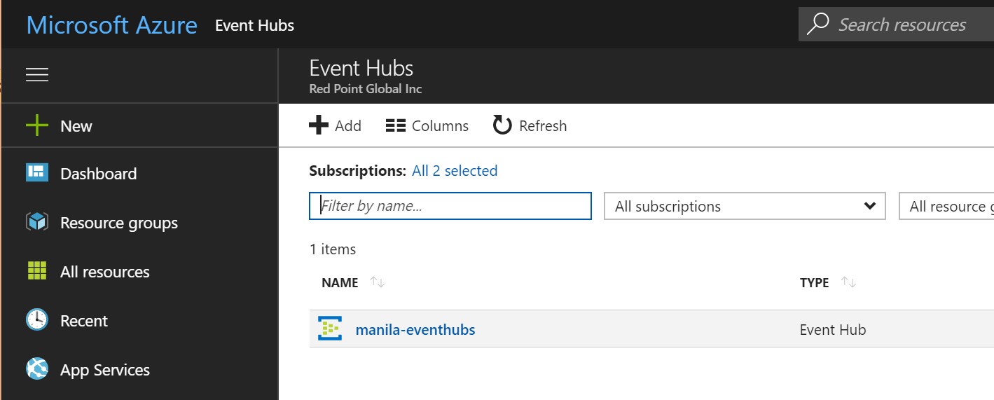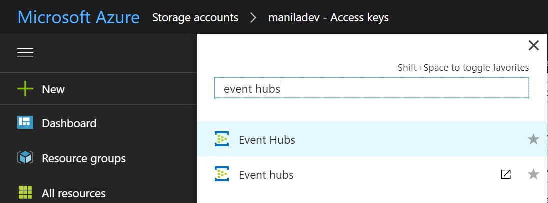 Once you have successfully logged into the portal, search for the “Event Hubs” resource and select Event Hubs.
