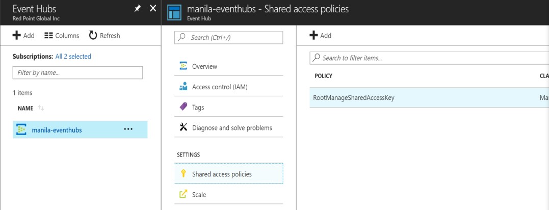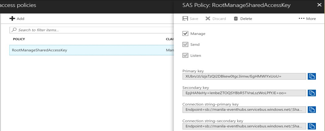 Select RootManageShareAccessKey (under Policy).