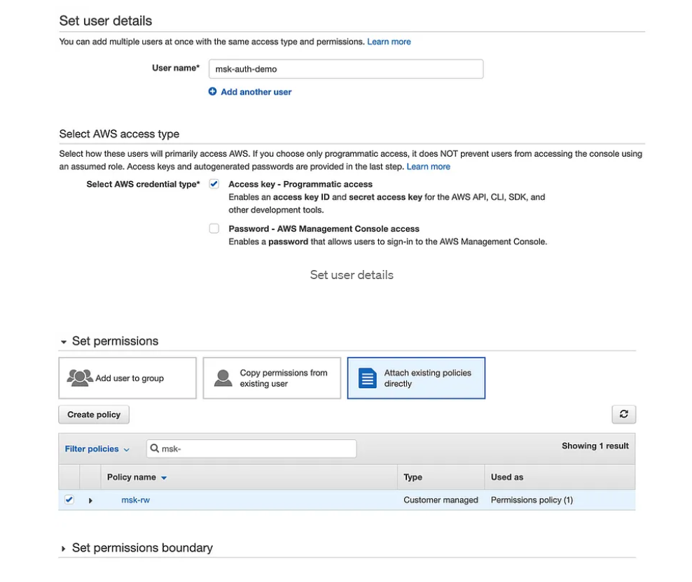 Don’t forget to download and save credentials. Use the Access Key and Secret Key to configure the Kafka Queue provided in Redpoint Interaction