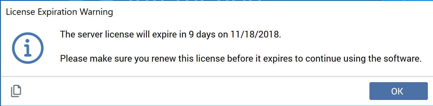 When you sign in and your license has 14 days or fewer before expiry, a dialog is displayed: