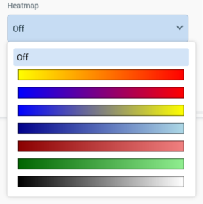 Heatmap: you can apply a colored heatmap to pivot table results . By default, a new pivot table’s Heatmap is set to Off. You can click the property to display available heatmap options using the dropdown:
