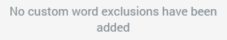 Add new Word Exclusion: invocation of this option adds a new word exclusion to the bottom of the list. By default, its text is set to the value ‘word’. If a second ‘word’ is added to the list, it is displayed as ‘word 2’ (the integer can be incremented as required).