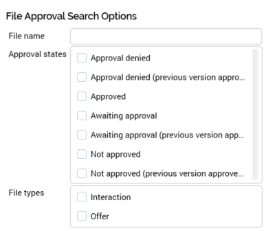 All are unchecked by default. You can limit the files listed to only those with approval statuses matching your selections.