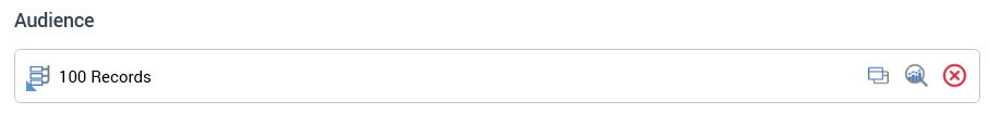 Audience: you must configure the block with an audience file. You can browse for an audience, or populate the property using drag and drop. You can also initiate the creation of a new audience. Having selected an audience, inline Open Latest Version, View Insights and Clear buttons are displayed.