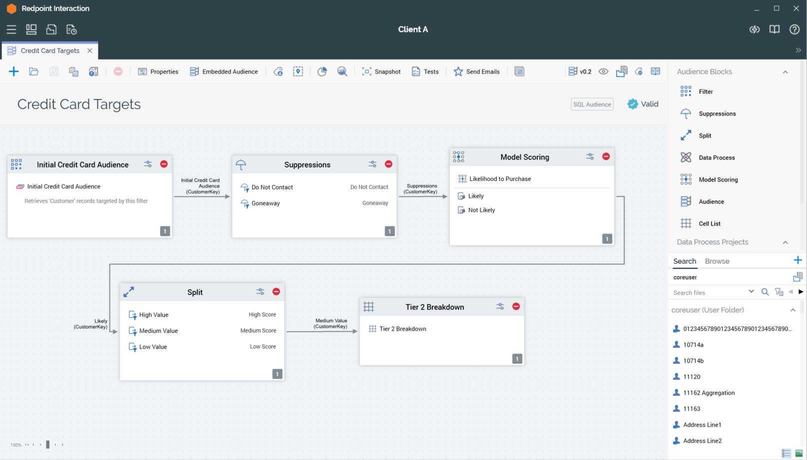 Audiences wrap up the logic involved in determining to whom messages are to be delivered when executing your interactions. An audience is composed of a series of segments.