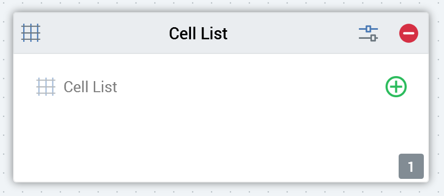 A single cell list block property, Cell list, can be managed directly in the workspace.