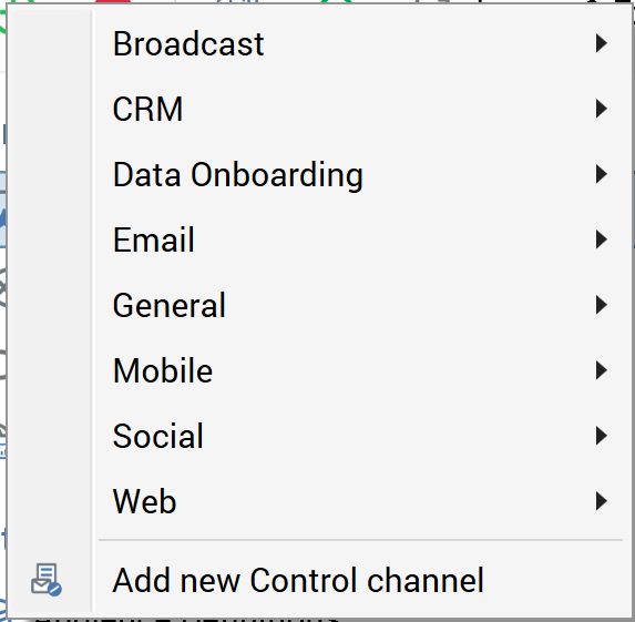 Upon invocation, an initial sub-menu is shown, allowing you to choose the category of channel you wish to create.