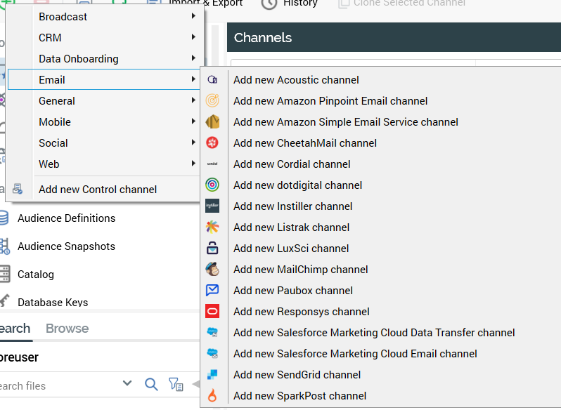 This is carried out using the Create new Channel toolbar button.
