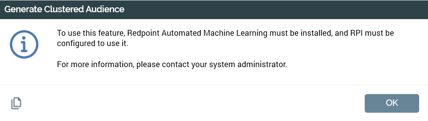 Generate New Audience: this button allows you to automatically generate an audience exposing outputs based on Redpoint Automated Machine Learning (AML) clusters from the current selection rule. If you click the button when the rule contains unsaved changes, a warning is shown.