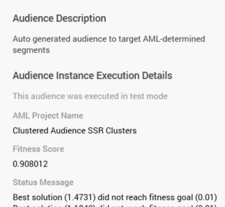 Results are capped in accordance with the training set's Initial Audience Test Cap property. Additional properties provided by AML are shown below the Audience Instance Execution Details section: