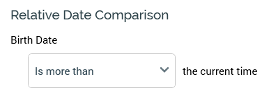 It allows you to create criteria that compare a date interval against the time at execution – for example, ‘[attribute] is 1 month before the current time’ or ‘[attribute] is within 5 years of the current time’.