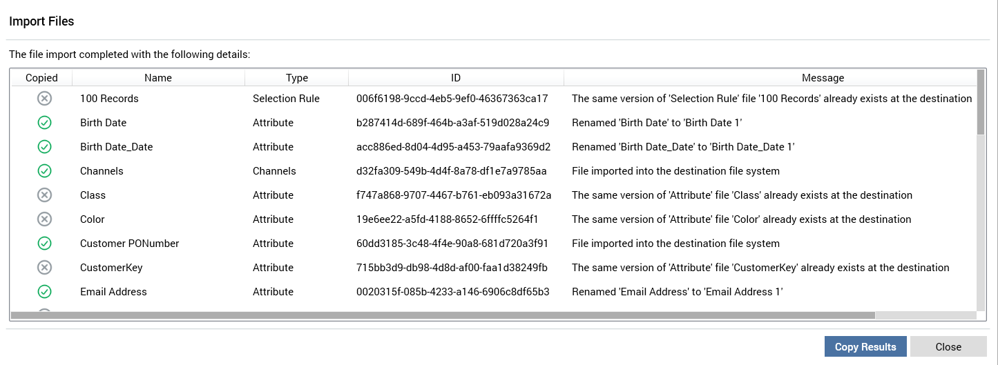 You can click the Copy Results button to copy the results shown in the overlay to clipboard. You can also click the Close button to remove the Import Files overlay.