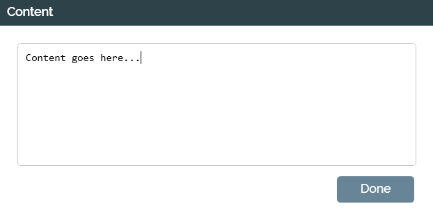 Clicking it appends a new content element to the list. Its position indicator is set appropriately to ‘Content [n]’ (where [n] is the current highest position indicator + 1).