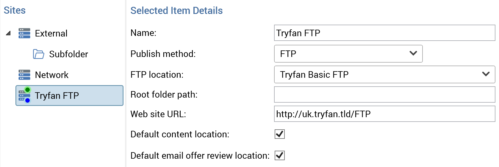 Web Publish Sites allow you to create a representation of a web site as a tree of network folders and/or FTP locations. These can then be used when publishing landing pages and smart assets.