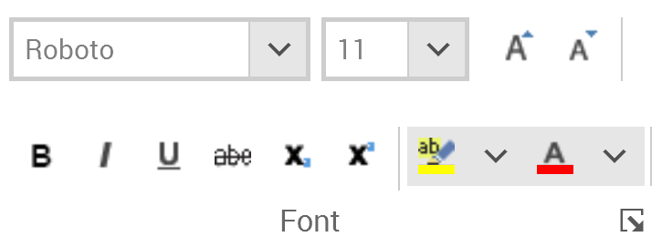 Show the font dialog box: this button, displayed in the bottom right-hand corner of the Font section, allows you to display the Font dialog box, which is documented separately.