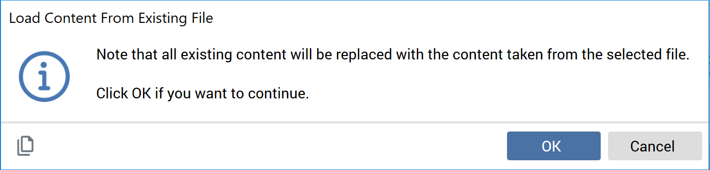 You can click OK to proceed with loading the new, or Cancel to retain the existing, content. Proceeding displays the Load Content Windows file system dialog.