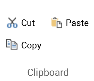 The Home tab’s Clipboard section exposes the following commands: