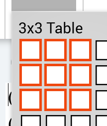 You can hover the mouse over the grid to select your required table size: