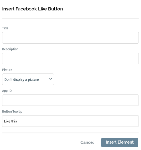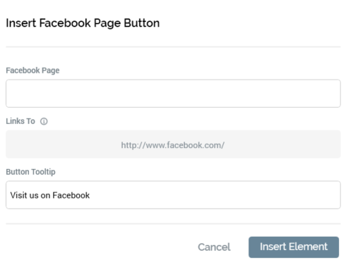 Cancel: clicking Cancel removes the dialog from display without inserting a Facebook Login button