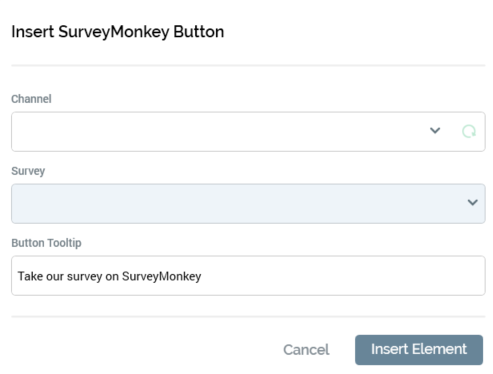 Clicking it displays the Insert SurveyMonkey button dialog.