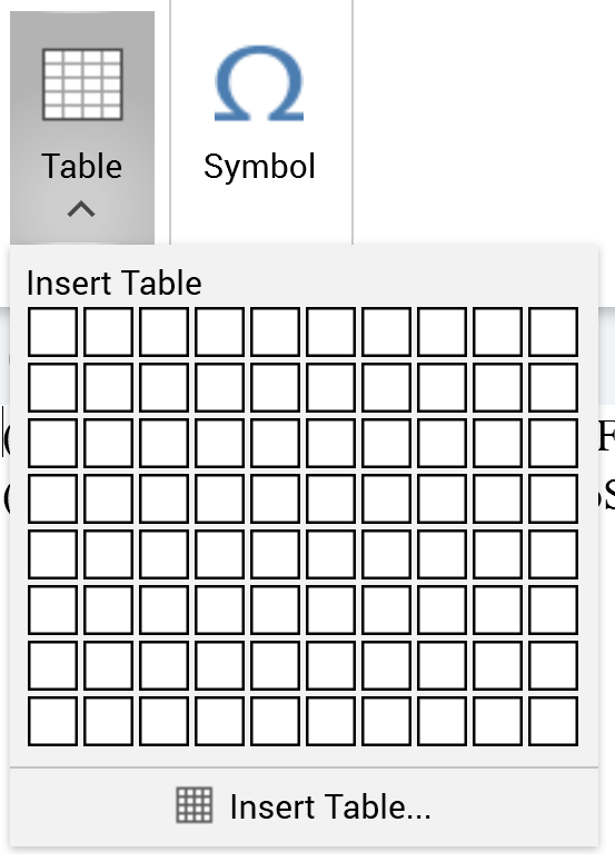 Clicking the bottom right cell within the grid inserts a table of the required size at the cursor position.