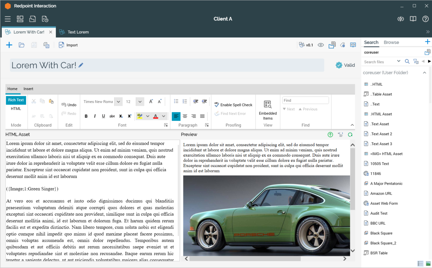 The HTML asset content editor allows you to edit an HTML asset’s contents. It is described in its own section within the RPI documentation.