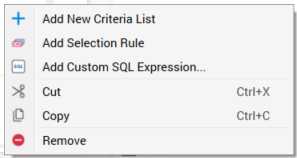 If the criteria list is dropped in the rule’s canvas, it is presented at root level within the rule, after all existing criteria, criteria lists and linked selection rules.