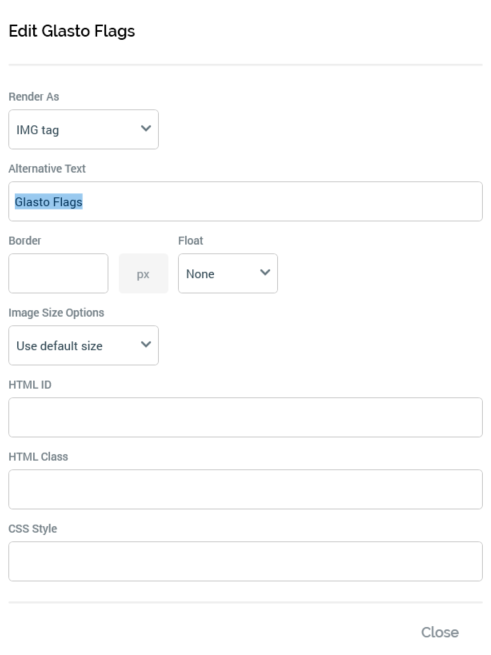 URL only: when this value is selected, all other properties within the dialog are hidden. When selected, a string representation of the image path is rendered within HTML content, and the image is not displayed. This value can be used when building custom HTML.