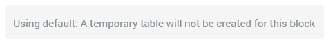 Note that the property is only enabled if the filter is followed by another filter. A temporary table is always created for the last filter in a chain thereof (in such a case, if all blocks' Create temporary table checkboxes are unchecked, all filters' SQL is concatenated and executed in a single statement).