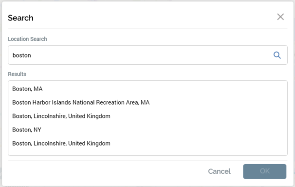 You can select a location to proceed, or click Close or Cancel to remove the search results from display.