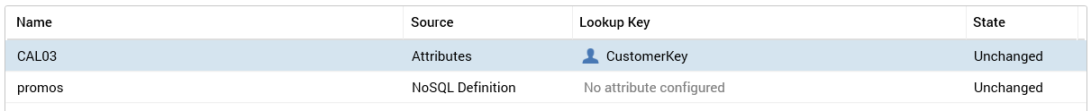 Update The Cache: this button is only displayed when Create as table in the cache is checked. It is used to refresh values for the attributes with which the cached attribute list is configured, as persisted in the Realtime cache. When unsaved changes are present in the cached attribute list, the button is disabled and appears as follows: