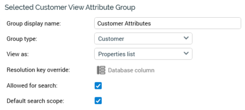 Allowed for search: this checkbox, which is checked by default, allows you to define that the attribute group will be available in the Scope dropdown in the Single Customer View’s Search overlay.