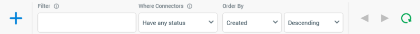 Order By: this dropdown allows you to order the list of data connectors by name, or by created date (the default).