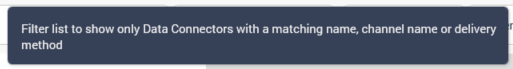 You can enter a text string by which to filter the list of data connectors; only data connectors with a matching name, channel name or delivery method will be displayed when you do so. The filter is applied automatically upon text being entered.