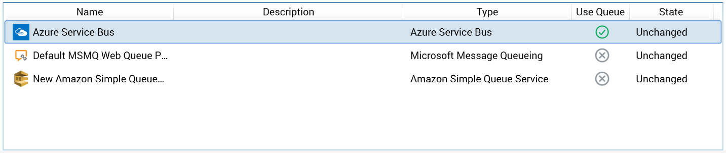 Use Queue: a tick is displayed at the queue provider that is currently being used. A cross is shown at all other queue providers.