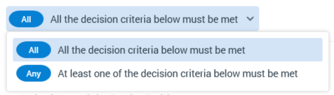 Note that All/Any is always displayed, even if a decision contains only a single decision criterion. In this case it has no effect.